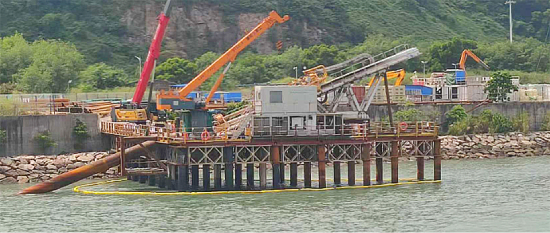水上定向钻施工平台技术:在大铲岛至妈湾电厂供气专线管道工程中由于施工场地条件限制,大铲岛一侧入土点位于海中,毗邻海岸线,为此,我公司设计了该新型海上快装施工平台。平台主要由钢管桩、桩帽、连接梁、桩连接环、桁架、拉杆机构、走台单元、钻机底架、吊机底架几部分组成。该平台通过小型组件快速、便捷连接,可实现灵活扩展,实现多种形状组合,大幅缩短了定向钻平台施工工期。平台可适应多变海域条件,通过新型结构设计,拥有较高的抗风浪能力,施工期间在超强台风"苏拉"中充分验证了其可靠性,也为涉海定向钻提供了创新技术支持和宝贵经验。
