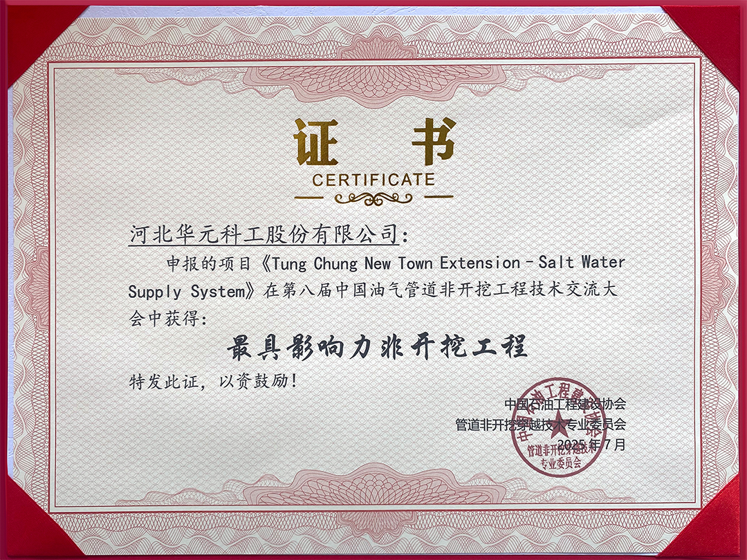 在7月10日上午举行的颁奖典礼上,PG电子·(中国)官方网站 凭借其在“香港东涌项目定向钻穿越项目”中的卓越表现,荣获了2024-2025年度“最具影响力非开挖工程”奖。PG电子执行总经理王晓冰代表PG电子上台领奖。此奖项是由中国石油工程建设协会、管道非开挖穿越技术专业委员会在数家申报单位中评选产生。这一奖项不仅是对PG电子在复杂地质条件下攻克施工难题能力的高度认可,更是对其在非开挖工程领域持续创新与突破的充分肯定。